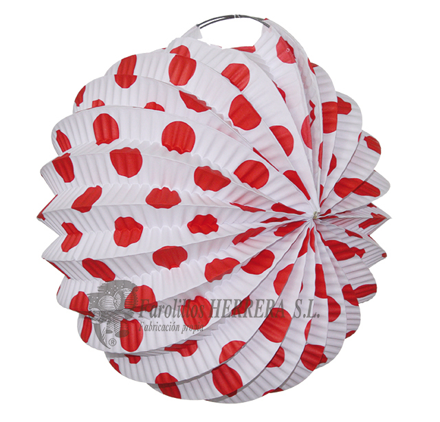 Catálogo Donde estamos Inicio <<atrás Ref. 2100 Farolillo de 20 cm de diámetro, colores lisos y lunares sevillanos. Blanco y Rojo