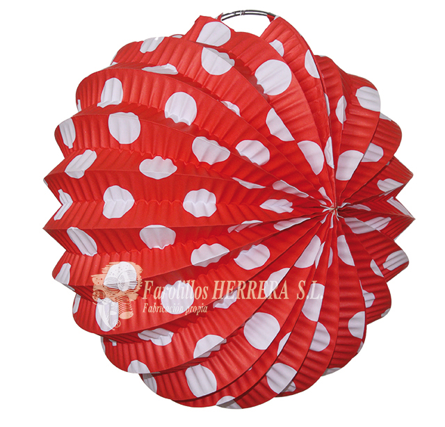 Catálogo Donde estamos Inicio <<atrás Ref. 2101 Farolillo de 20 cm de diámetro, colores lisos y lunares sevillanos. Rojo y Blanco