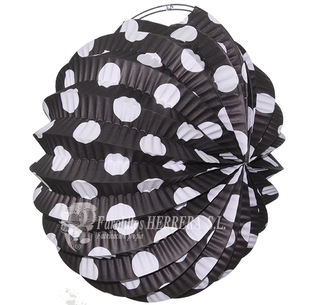 Farolillo de 20 cm de diámetro, colores lisos y lunares sevillanos. Negro y Blanco