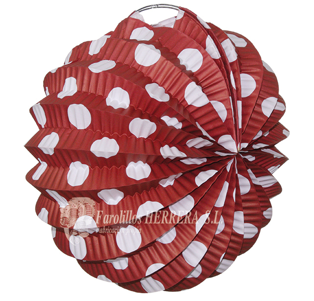 Catálogo Donde estamos Inicio <<atrás Ref. 2115 Farolillo de 20 cm de diámetro, colores lisos y lunares sevillanos. Burdeos y Blanco